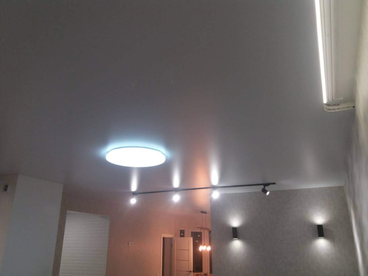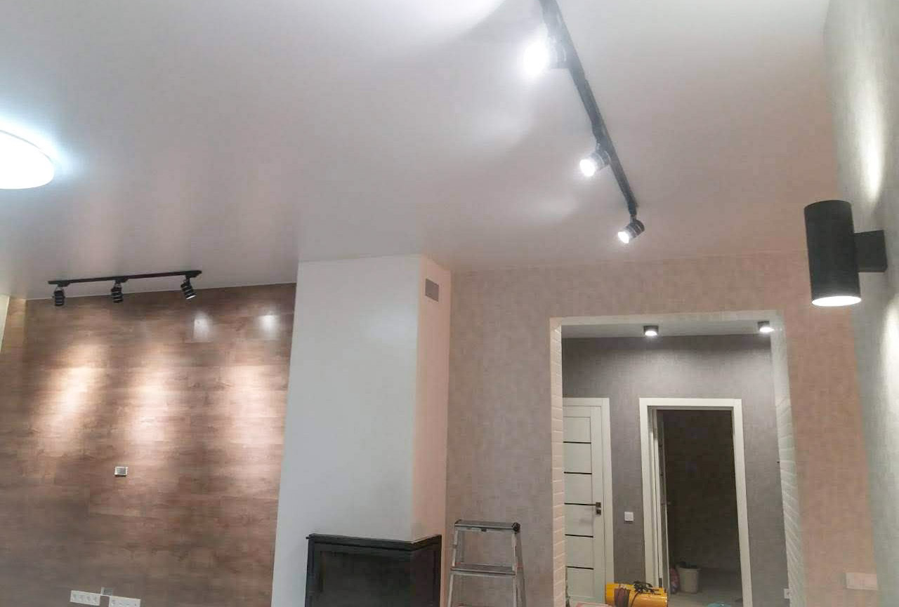 Матовый натяжной потолок в гостиной